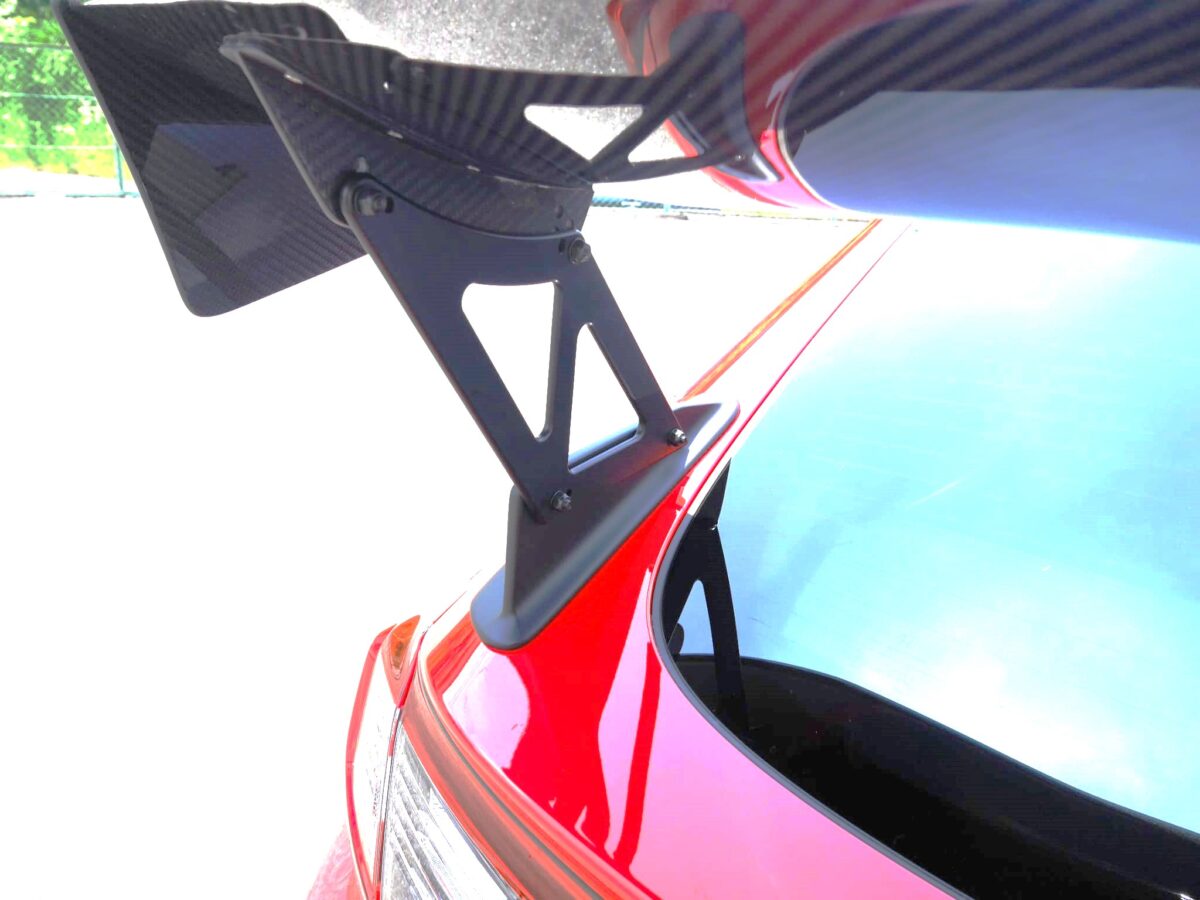 タイプ4をベースにFL5のリヤ周りに合わせて翼面形(上から見た形)を修正し、ウイング断面もFF車両を考慮してデザインしました、ダウンフォース的には低ダウンフォースのタイプ4より多めのタイプ2よりも少なめのポジションになります、画像はスワンネックですが下の画像のように通常のマウントタイプもあります