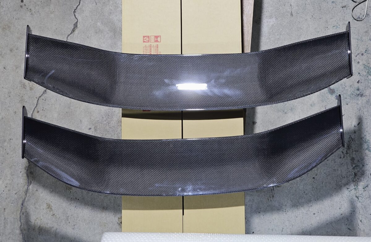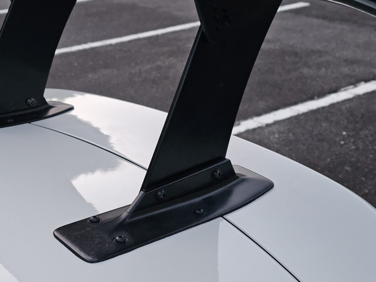 後出しになってしまいましたがGR86&BRZ専用の定番ウイングを新たに開発しました、通常この車には専用ベースとブラケットがワンピースでシンプルに構成してありますが、こちらを選ばれるユーザーさんはもう少しサーキット走行をされる方が多いのでは?と考え、ウイング位置を高く設定して、その後の自由度を多く出来るようにベースとブラケットを別パーツにしてあります。